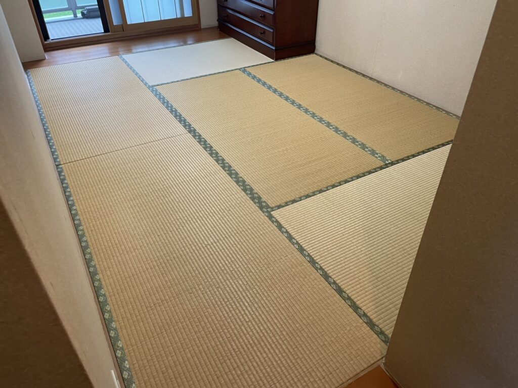 長年使われてきたイグサ畳は、日焼けや経年による色あせが見られ、お部屋全体がやや暗い印象でした。